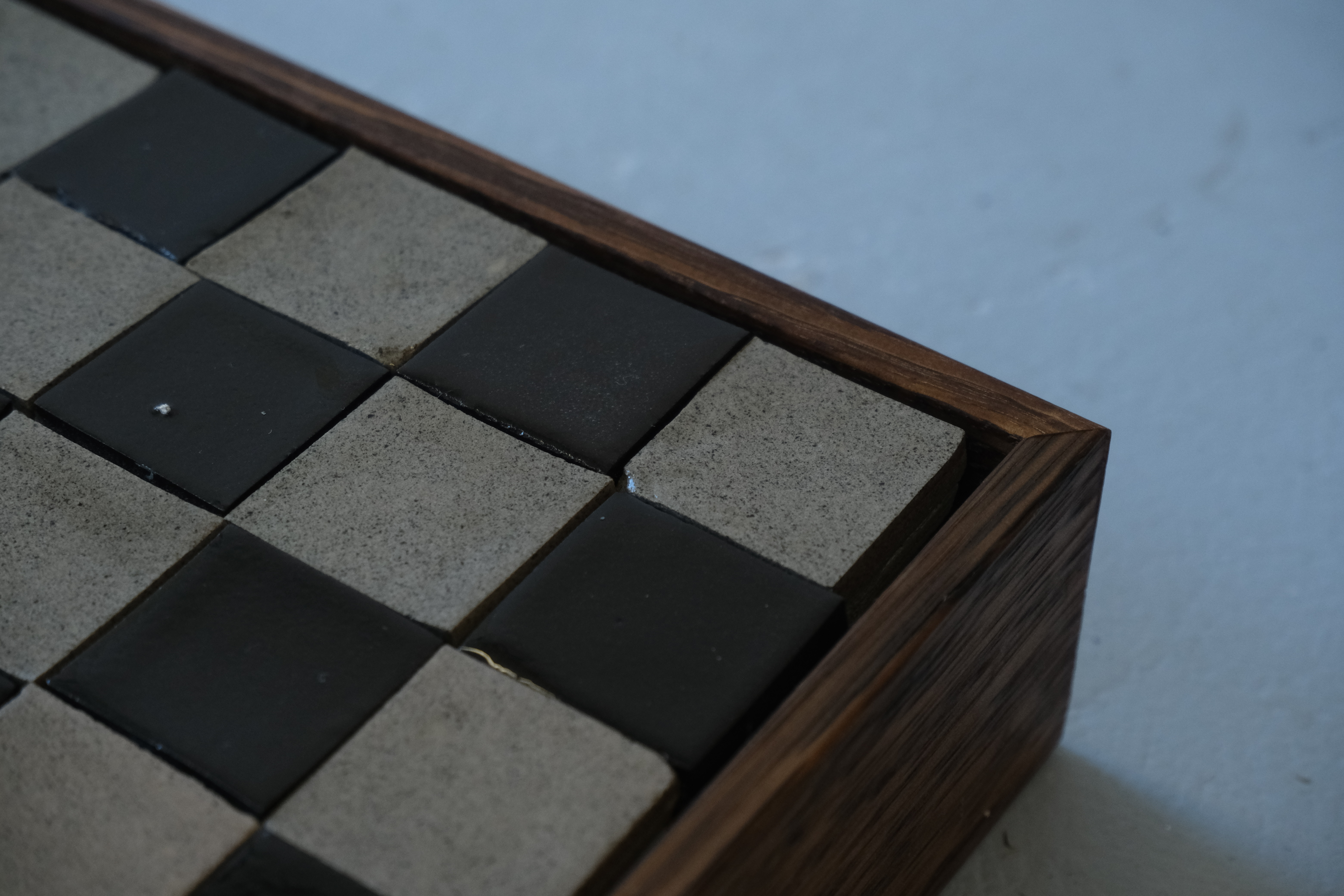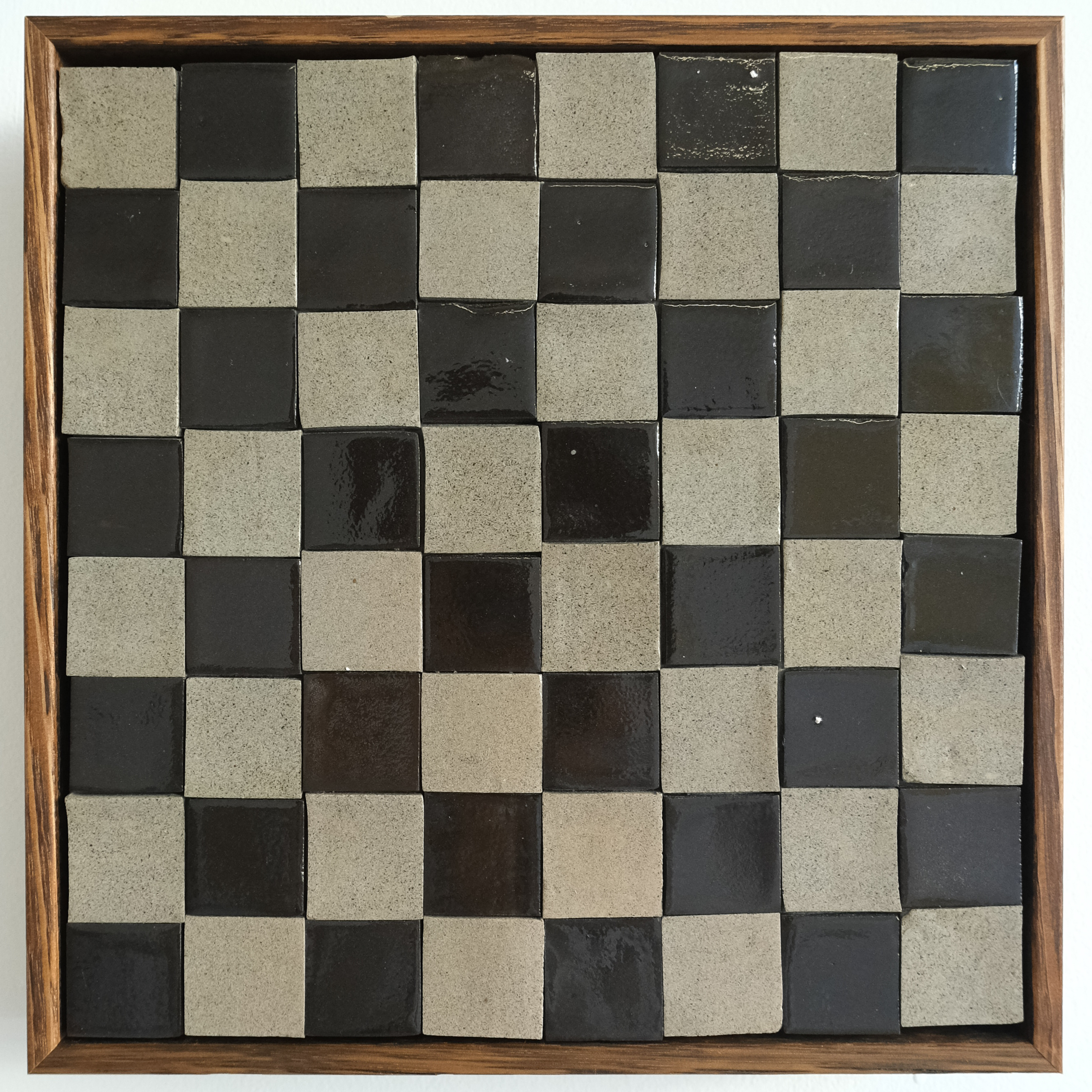 , 2022, Clear glaze on multiple stoneware tiles, stained oak frame, 250 x 250 x 50 mm